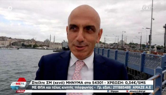 Ο Μανώλης Κωστίδης βγήκε στον αέρα της εκπομπής του Σκάι στην εκπομπή Σήμερα, φορώντας ροζ γραβάτα.
