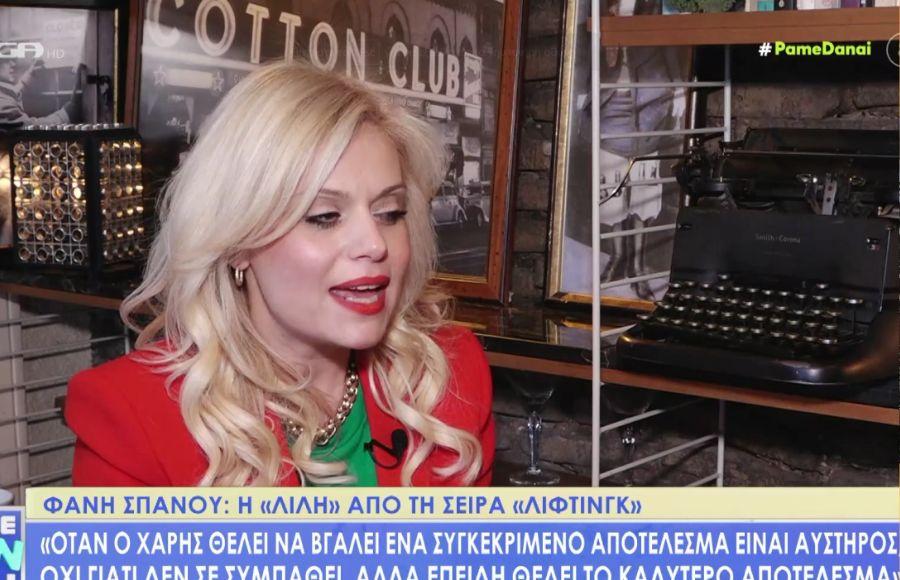 Τη Φανή Σπανού τη θυμόμαστε μέσα από τη σειρά «Λίφτινγκ» όπου υποδυόταν τον ρόλο της «Λίλης», ως νεαρή σύντροφος του Χάρη Ρώμα.