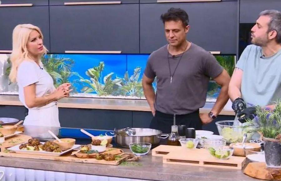 Ο Σάββας, όπως θα δείτε και στα πλάνα, ένιωθε αμήχανα μέχρι που η παρουσιάστρια πήγε δίπλα του και ξεκίνησαν έναν διάλογο περί μαγειρικής on air.