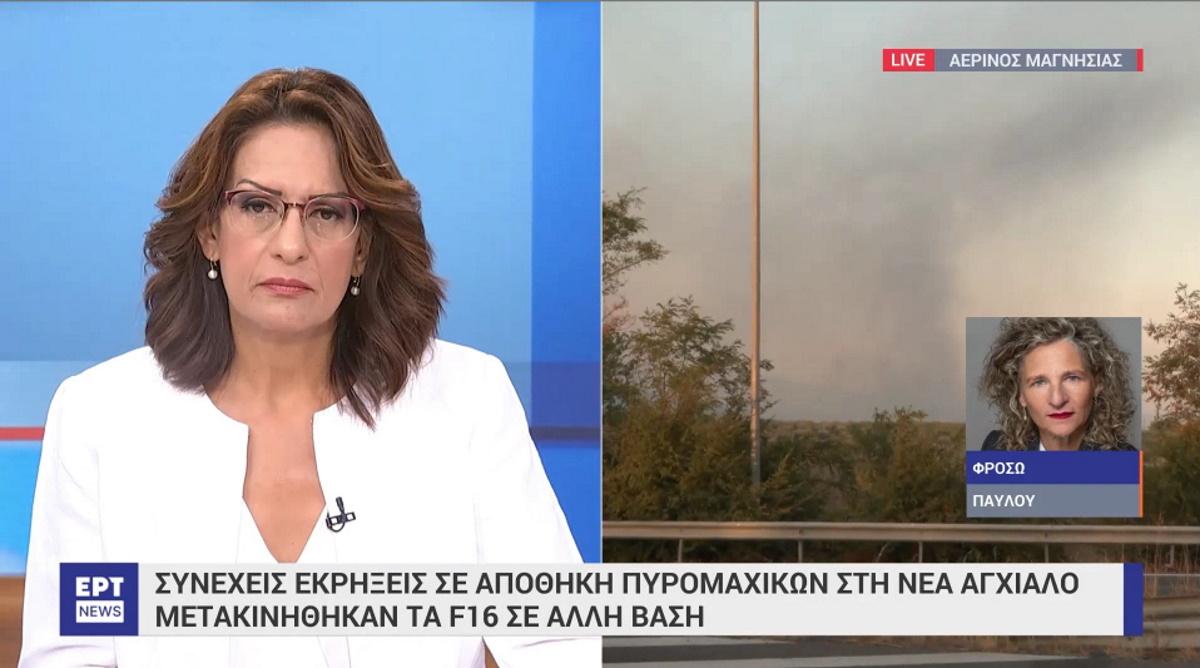 Η δημοσιογράφος του κρατικού καναλιού κάλυπτε το ρεπορτάζ στη Μαγνησία όπου και η περιοχή θύμιζε εμπόλεμη ζώνη.