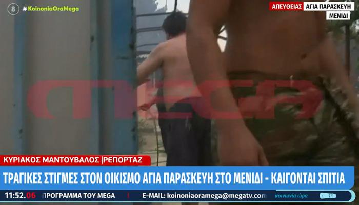 «Ελάτε έξω, πάμε», φώναζε ο δημοσιογράφος του Mega, την ώρα που η κάμερα έδειχνε έναν ηλικιωμένο να απομακρύνεται από την περιοχή.