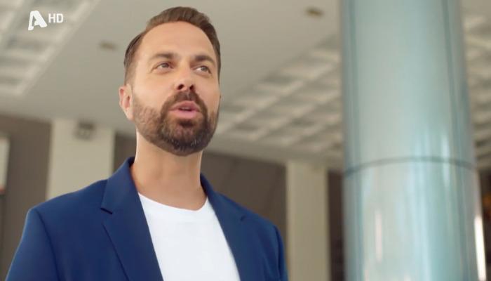 Στο τρέιλερ πρωταγωνιστής είναι φυσικά ο τραγουδιστής που αναλαμβάνει φέτος την πρόκληση της παρουσίασης. Ο Ηλίας Βρεττός, ντυμένος με κουστούμι και clean cut στυλ, ανεβαίνει τα σκαλιά μιας μεγάλης αντιπροσωπείας αυτοκινήτων για να ζητήσει… κουρτίνες.