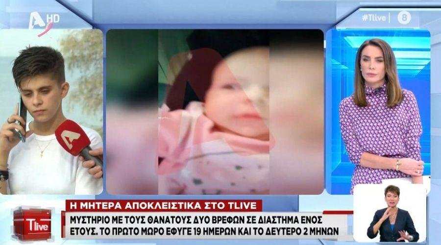 Η 23χρονη Ειρήνη μίλησε στο T-live και στον Ιάσονα Τσόλη, μόλις εννέα μέρες μετά τον θάνατο του δεύτερου παιδιού της… Όπως δήλωσε η μητέρα, το παιδί νοσηλευόταν στο Παίδων Αγία Σοφία, χωρίς οι γιατροί να γνωρίζουν την αίτια των σπασμών που παρουσίαζε. Σε κάθε επεισόδιο η μητέρα ήταν παρούσα φωνάζοντας τους γιατρούς.