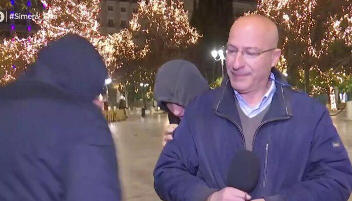 Ο Γιώργος Τσελίκας έκανε σύνδεση με την πρωινή εκπομπή του ΣΚΑΪ. Ωστόσο, αυτή η πρώτη σύνδεση είχε και το πρώτο απρόοπτο της χρονιάς. Δύο νεαροί πλησίασαν τον ρεπόρτερ και φώναξαν στο μικρόφωνο “Λευτεριά στην Παλαιστίνη”.