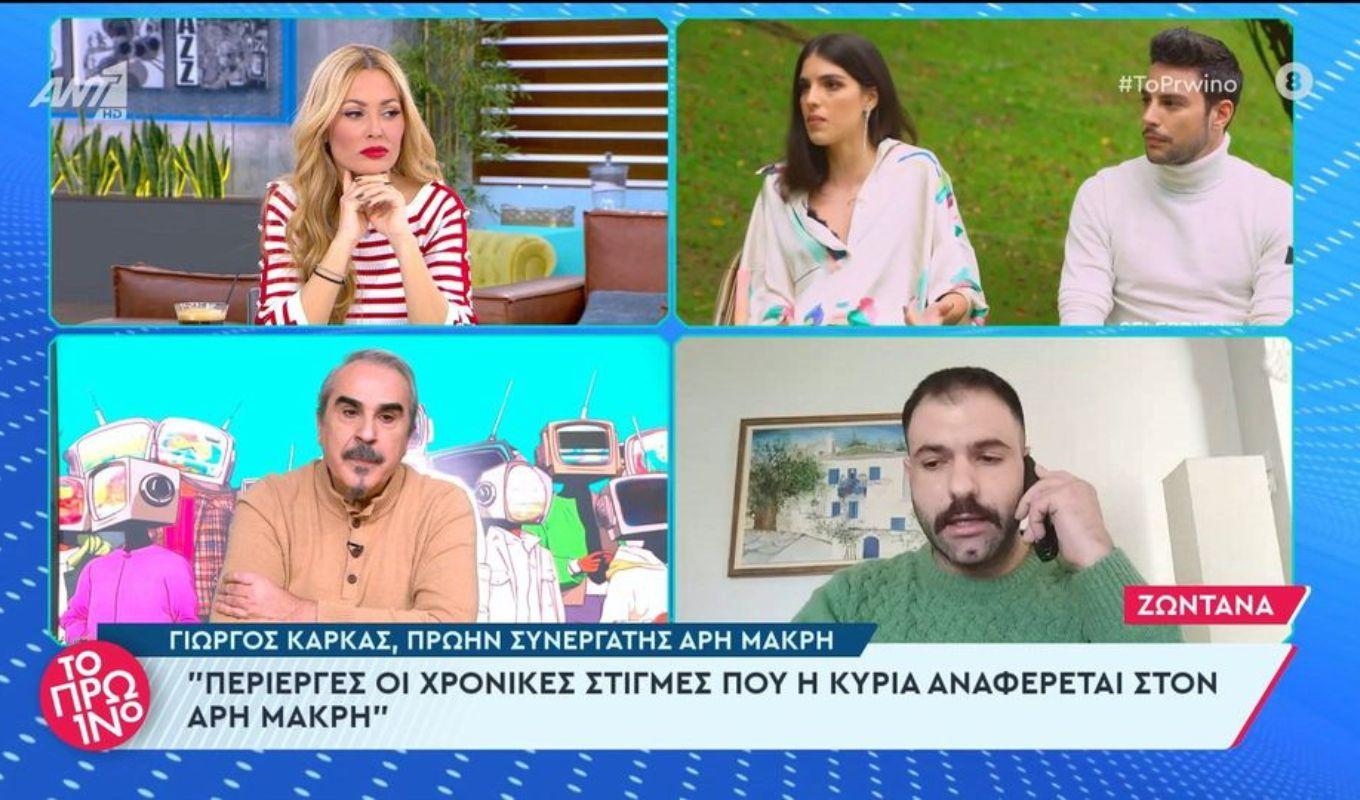 Στον αέρα της εκπομπής «Το Πρωινό» βγήκε σήμερα ο Γιώργος Καρκάς, προκειμένου να μιλήσει για τον πρώην συνεργάτη του, Άρη Μακρή, και την Άννα Μαρία Βέλλη. Ο ηθοποιός, μάλιστα, είχε και μια μικρή “αντιπαράθεση” με τον Βαγγέλη Περρή.