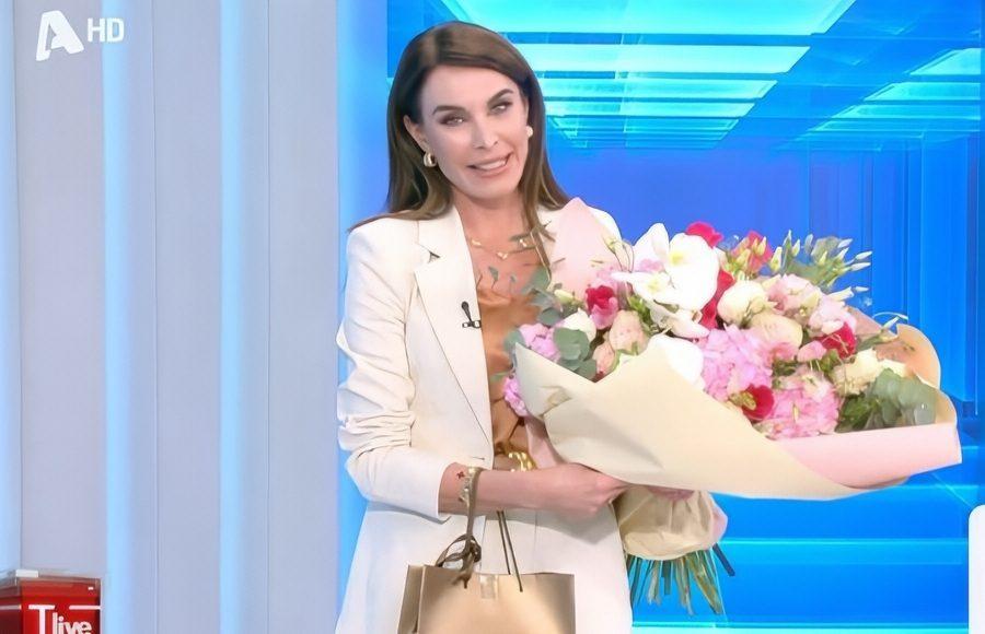 Η Τατιάνα Στεφανίδου έχει σήμερα, Πέμπτη 18/4, γενέθλια και στην έναρξη της εκπομπής οι συνεργάτες της, της έδωσαν μια μεγάλη ανθοδέσμη.