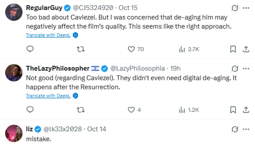 Η απόφαση του Μελ Γκίμπσον να μην επαναφέρει τον Τζιμ Καβίεζελ προκάλεσε έντονη δυσαρέσκεια στους θαυμαστές, οι οποίοι χαρακτήρισαν την επιλογή «βλάσφημη» στα social media. Κάποιος σχολίασε στο Twitter: «Ο Καβίεζελ πρέπει να είναι συντετριμμένος. Μιλάει για αυτήν την ταινία από το 2012», ενώ ένας άλλος πρόσθεσε: «Νόμιζα ότι θα χρησιμοποιούσαν τον Τζιμ και θα έκαναν CGI για να φαίνεται νεότερος».