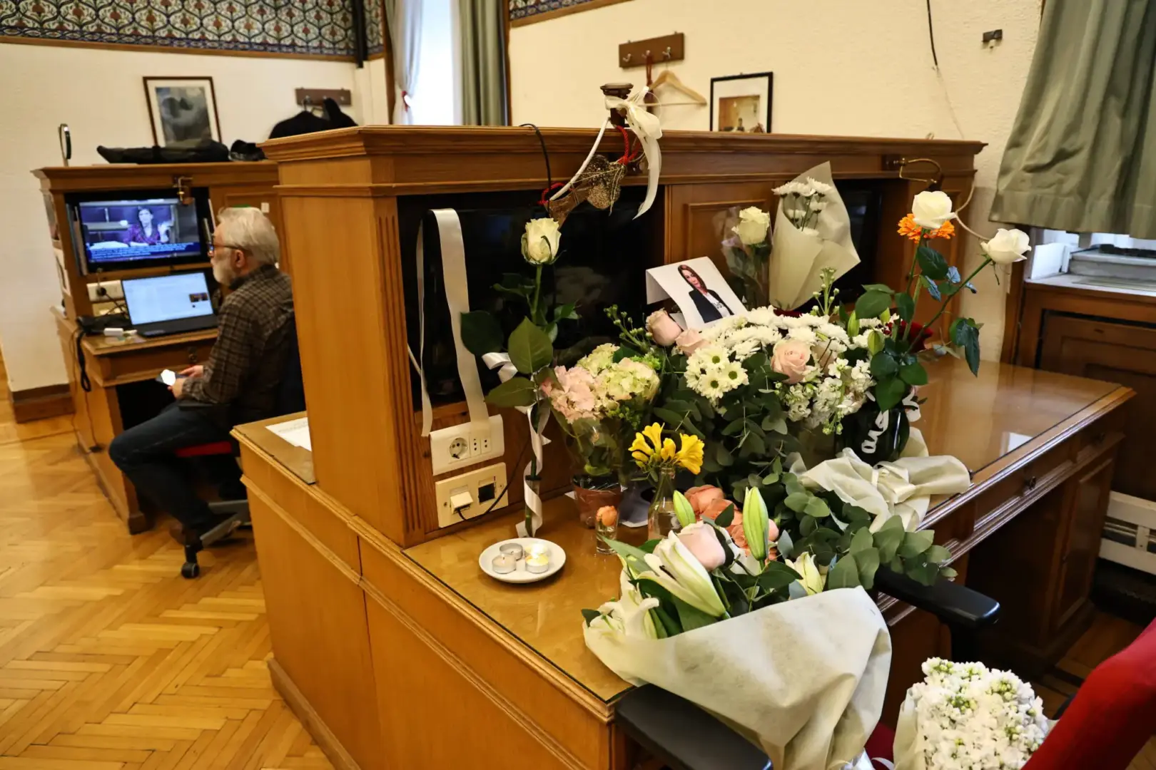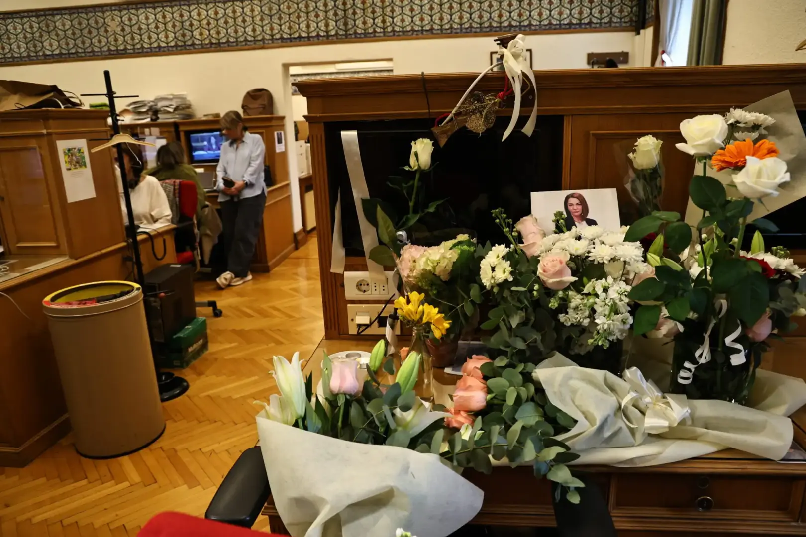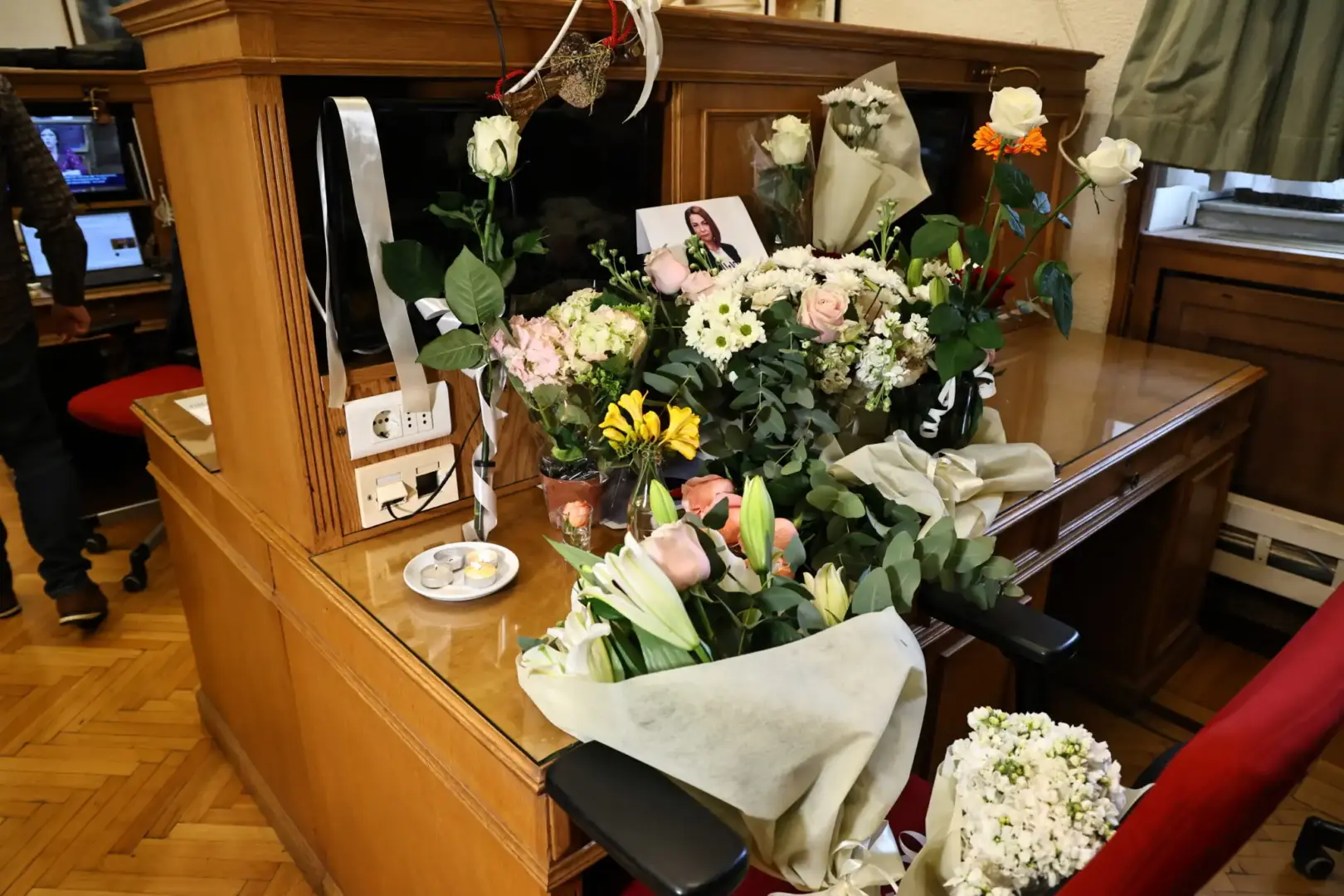 Το γραφείο της Αντιγόνης Πανέλλη «βούλιαξε» από λουλούδια και σημειώματα από όλους εκείνους που δεν ήθελαν να πιστέψουν ότι δεν θα την ξαναδούν. Όλοι στην αίθουσα των κοινοβουλευτικών συντακτών της οποίας αποτελούσε αναπόσπαστο κομμάτι επί 17 χρόνια κάθονταν βουβοί, κλαμένοι και με ένα τεράστιο γιατί.