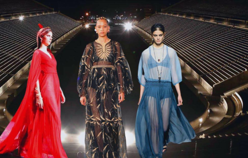 Η ελληνική παραδοσιακή χειροτεχνία, οι αρχαιοελληνικές αξίες του φωτός (Phos) και της ομορφιάς (Kallos) και τα στοιχεία νεωτερικότητας παντρεύονται στη συλλογή του οίκου με τίτλο «Dior Cruise Collection», σε ένα υπερθέαμα στον χώρο όπου αναβίωσαν οι Ολυμπιακοί Αγώνες.
