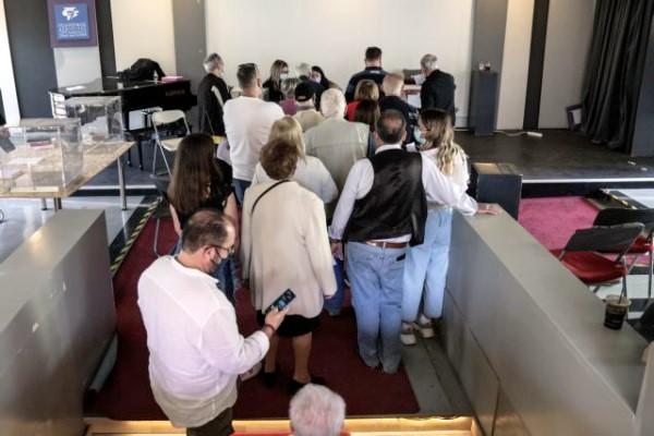 Στιγμιότυπο από τον δημοτικό πολυχώρο “ΓΑΛΑΞΙΑΣ” στην Νέα Σμύρνη κατα την διάρκεια της εσωκομματικής ψηφοφορία στο Κίνημα Αλλαγής (ΚΙΝΑΛ) όπου μέλη και φίλοι του κόμματος καλούνται να επιλέξουν την ονομασία ανάμεσα στο ισχύον “Κίνημα Αλλαγής” ή το “ΠΑΣΟΚ- Κίνημα Αλλαγής”, Κυριακή 8 Μαΐου 2022. Μέλη και φίλοι του κόμματος μπορούσαν επίσης να ψηφίσουν και για την εκλογή των νέων τοπικών και νομαρχιακών επιτροπών, καθώς και για τους αντιπροσώπους του συνεδρίου που θα διεξαχθεί στις 20-22 Μαΐου.