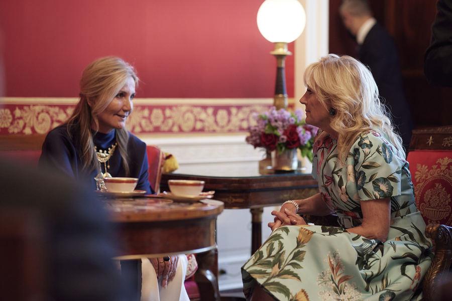Σε ένα ιδιαίτερα ζεστό και φιλικό κλίμα υποδέχθηκε την σύζυγο του πρωθυπουργού Μαρέβα Γκραμπόφσκι και τις δύο κόρες τους, Δάφνη και Σοφία Μητσοτάκη η Πρώτη Κυρία των ΗΠΑ, Τζιλ Μπάιντεν.