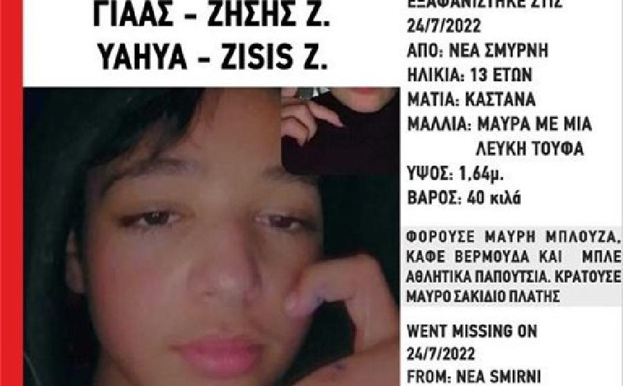 Συναγερμός έχει σημάνει στην αστυνομία , καθώς ένα 13χρονο παιδί εξαφανίστηκε από τη Νέα Σμύρνη.