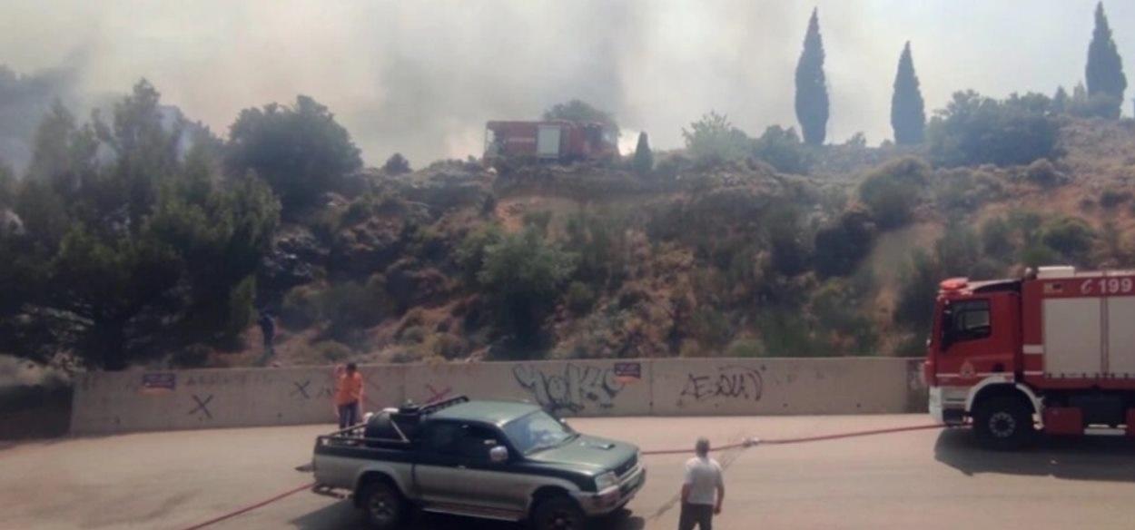 Σύμφωνα με την πυροσβεστική στο σημείο πνέουν ισχυροί άνεμοι 4-6 μποφόρ.