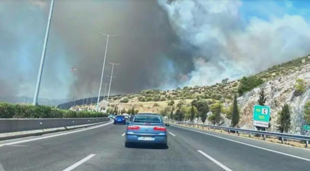 Λίγη ώρα αργότερα διακόπηκε, σύφωνα με την ΕΛΑΣ, η κυκλοφορία των οχημάτων στη νέα εθνική οδό Αθηνών – Κορίνθου, στον ρεύμα προς Κόρινθο, από το ύψος των διοδίων Ελευσίνας, λόγω της πυρκαγιάς στον Λουτρόπυργο Νέας Περάμου. Η εκτροπή της κυκλοφορίας γίνεται προς την παλαιά εθνική οδό.