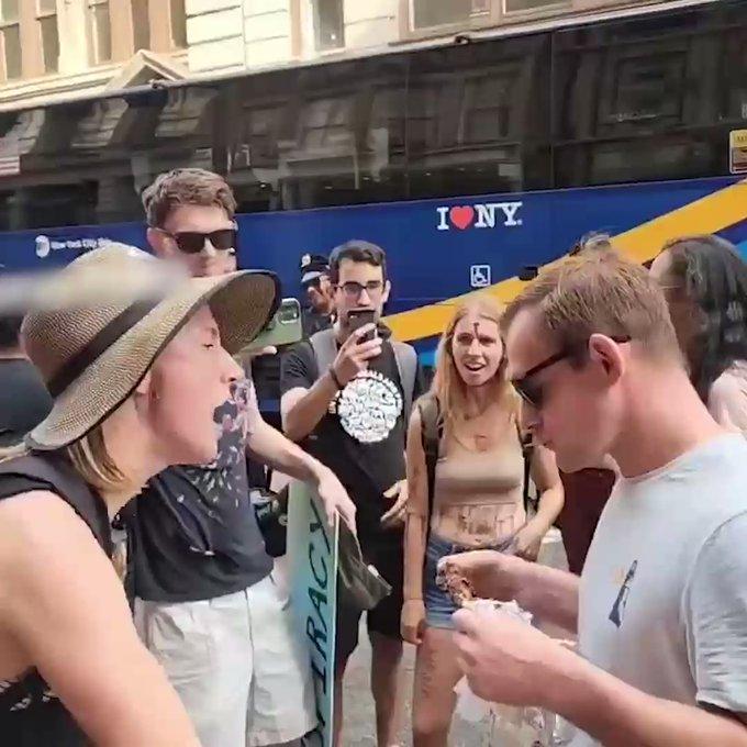 Ένα πραγματικό χαμό έκανε ένας νεαρός άνδρας κατά τη διάρκεια διαμαρτυρίας από vegans στο Μανχάταν της Νέας Υόρκης.