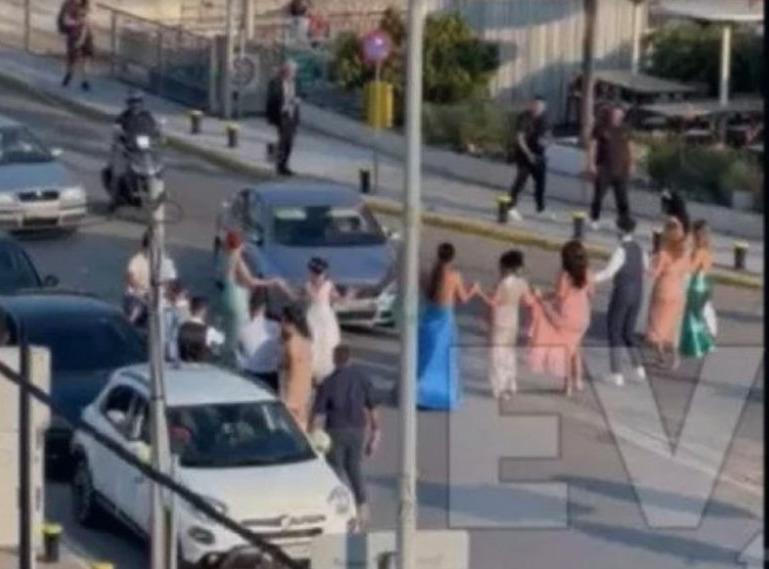 Κάποια στιγμή νύφη και καλεσμένοι αντιλήφθηκαν πως τα χορευτικά τους ενοχλούσαν και έκαναν στην άκρη για να περάσουν οι οδηγοί.