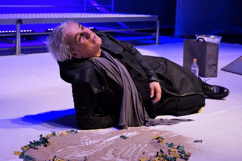 Τον συγκλονιστικό μονόλογο, συνοδεύει ένας μουσικός – ορχήστρα εν είδει «Μούσας» μεταμορφώνοντας με τη ζωντανή μουσική την αφήγηση σε ένα ζωντανό ποίημα.