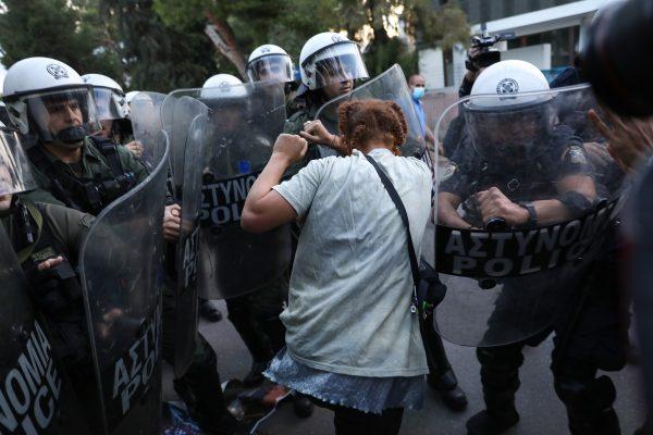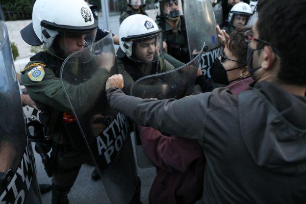 Ωστόσο, κάποια στιγμή οι άντρες των ΜΑΤ , για άγνωστους μέχρι τώρα λόγους, άρχισαν να απωθούν τους διαδηλωτές και διαδηλώτριες χρησιμοποιώντας τις ασπίδες τους με αποτέλεσμα να τους σκίσουν το πανό που κρατούσαν.