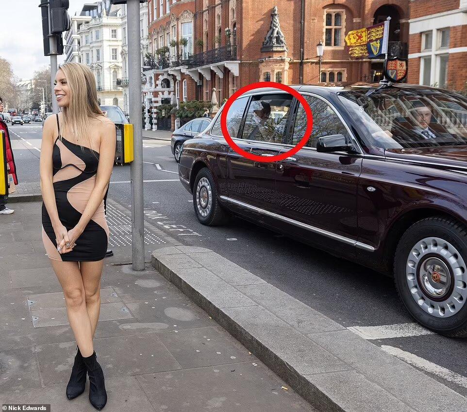 Εκείνη τη στιγμή περνούσε από το σημείο ο βασιλιάς Κάρολος και έτυχε να σταματήσει με το αυτοκίνητο που τον μετέφερε. Ο βασιλιάς Κάρολος δεν μπόρεσε να κρύψει την έκπληξή του, κοιτάζοντας την Alicia Watts με το διάφανο φόρεμα. Ο φακός κατέγραψε την αντίδρασή του, με το βλέμμα του να τα λέει όλα.