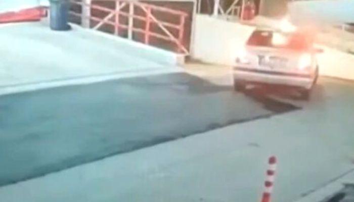 Σοκ προκαλεί το βίντεο ντοκουμέντο από κλειστό κύκλωμα ασφαλείας που δείχνει ένα ασημί όχημα να φρενάρει και να γίνεται έκρηξη μπροστά στο καπό. Ο οδηγός ανοίγει την πόρτα, βγαίνει έξω και φωνάζει για βοήθεια.