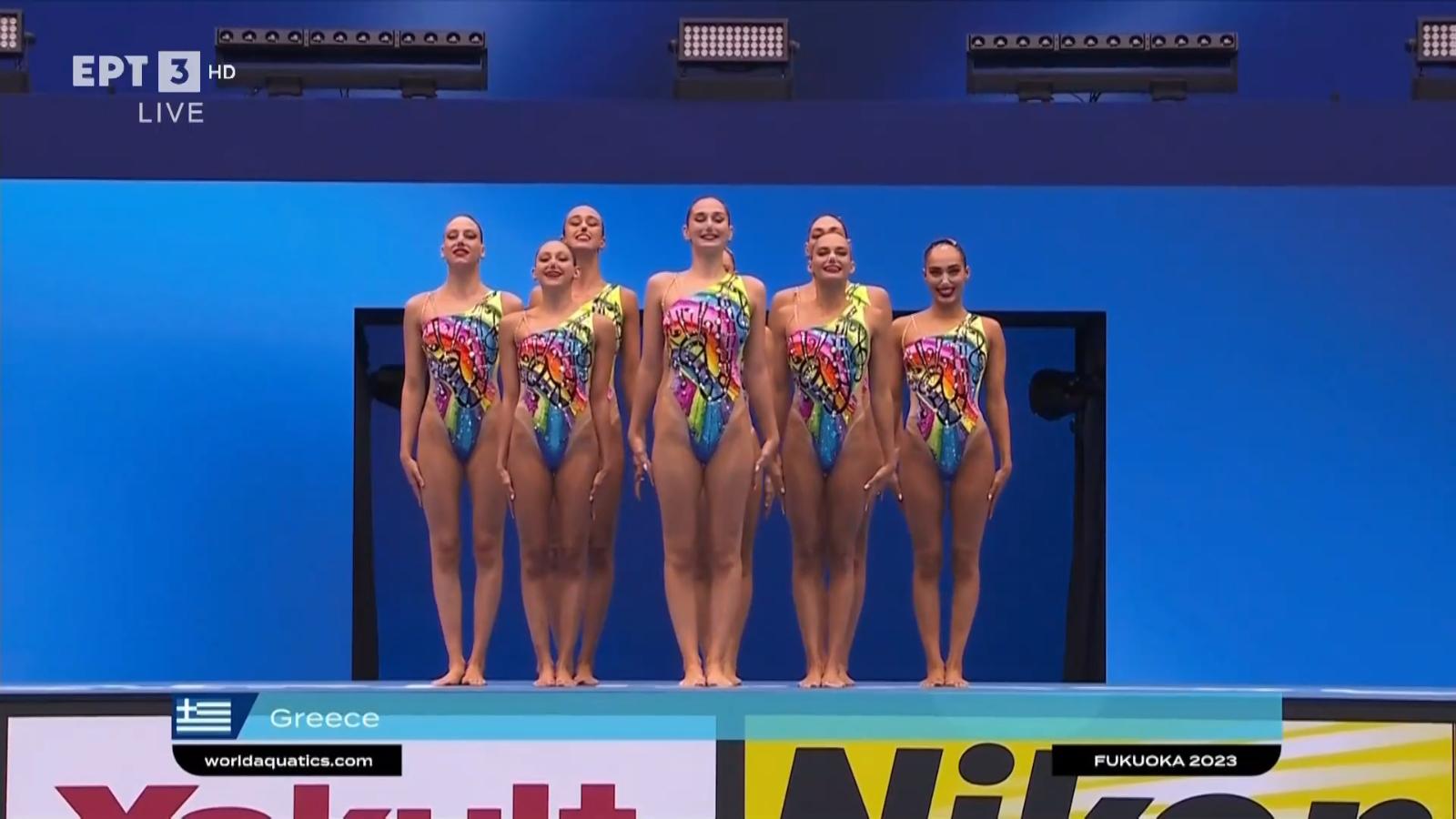 Στον τελικό της συγχρονισμένης κολύμβησης στο Παγκόσμιο Πρωτάθλημα Υγρού Στίβου στη Φουκουόκα της Ιαπωνίας εμφανίστηκε η ελληνική ομάδα με 8 κορίτσια.