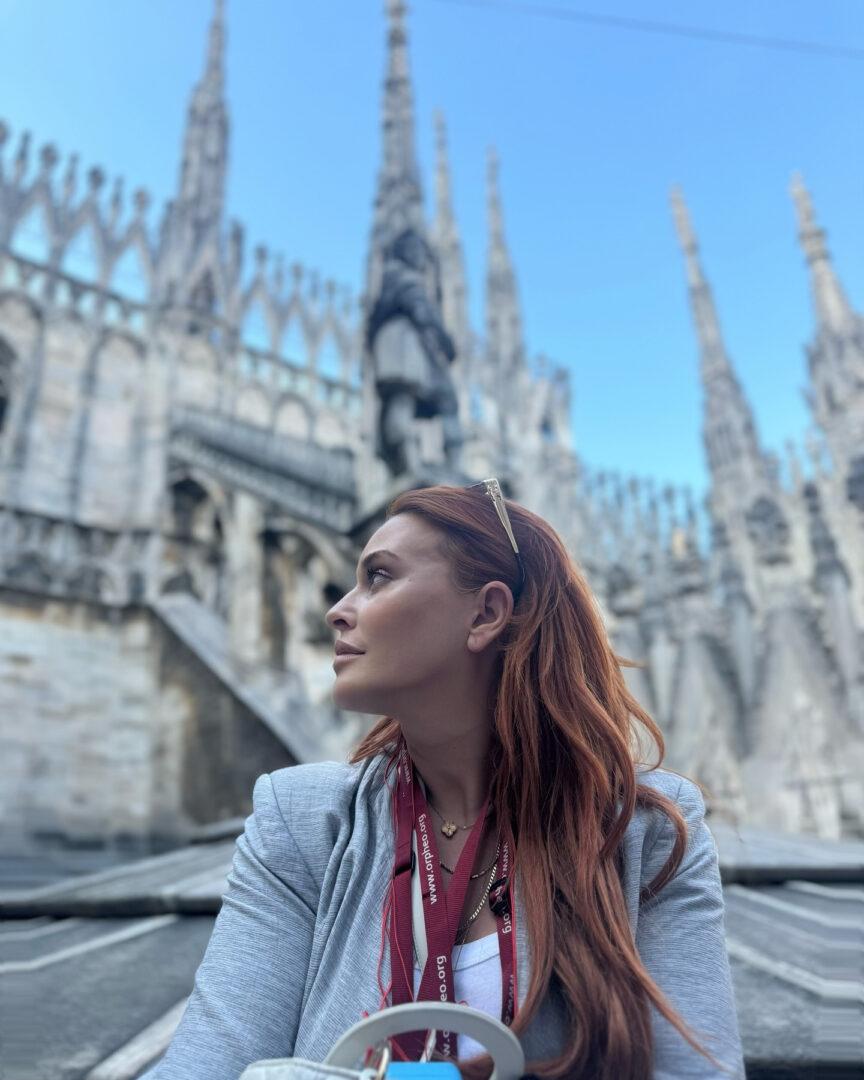 Από τις πρώτες στάσεις της ήταν το επιβλητικό Ντουόμο. Ο Καθεδρικός Ναός του Μιλάνου είναι πόλος έλξης για εκατομμύρια επισκέπτες της Ιταλίας και σίγουρα αξίζει μια βόλτα στο εσωτερικό του. Και φυσικά η Σίσσυ Χρηστίδου δέν έχασε την ευκαιρία να το επισκεφτεί.