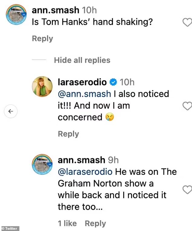 Ένας θαυμαστής σχολίασε κάτω από μια προωθητική ανάρτηση στον επίσημο λογαριασμό της SNL στο Instagram, «Τρέμει το χέρι του Τομ Χανκς;»