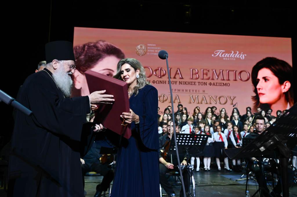 Ο Γέροντας Εφραίμ, με λόγια που άγγιξαν τις καρδιές όλων, στάθηκε με βαθιά συγκίνηση απέναντι στη Σοφία Μάνου. Την ευχαρίστησε θερμά για την ερμηνεία της και τόνισε πως «μια φωνή που κουβαλά τόση αλήθεια και ψυχή γίνεται προσευχή για την πατρίδα, βάλσαμο για τον πόνο των ανθρώπων και ελπίδα για τους νέους». Ο λόγος του δεν ήταν μόνο έπαινος, αλλά αναγνώριση της αποστολής που φέρει η τέχνη όταν ενσαρκώνεται από πρόσωπα με ήθος και δύναμη, όπως η Σοφία Μάνου. Η αίθουσα σείστηκε από συγκίνηση, καθώς τα λόγια του Γέροντα αντήχησαν σαν ευλογία και πνευματική σφραγίδα στην πορεία της ερμηνεύτριας.