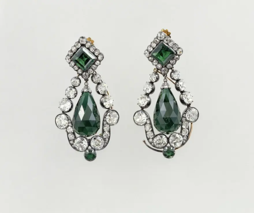Ένα ζευγάρι σκουλαρίκια με σμαράγδια από το σετ κοσμημάτων της Μαρίας Λουίζας