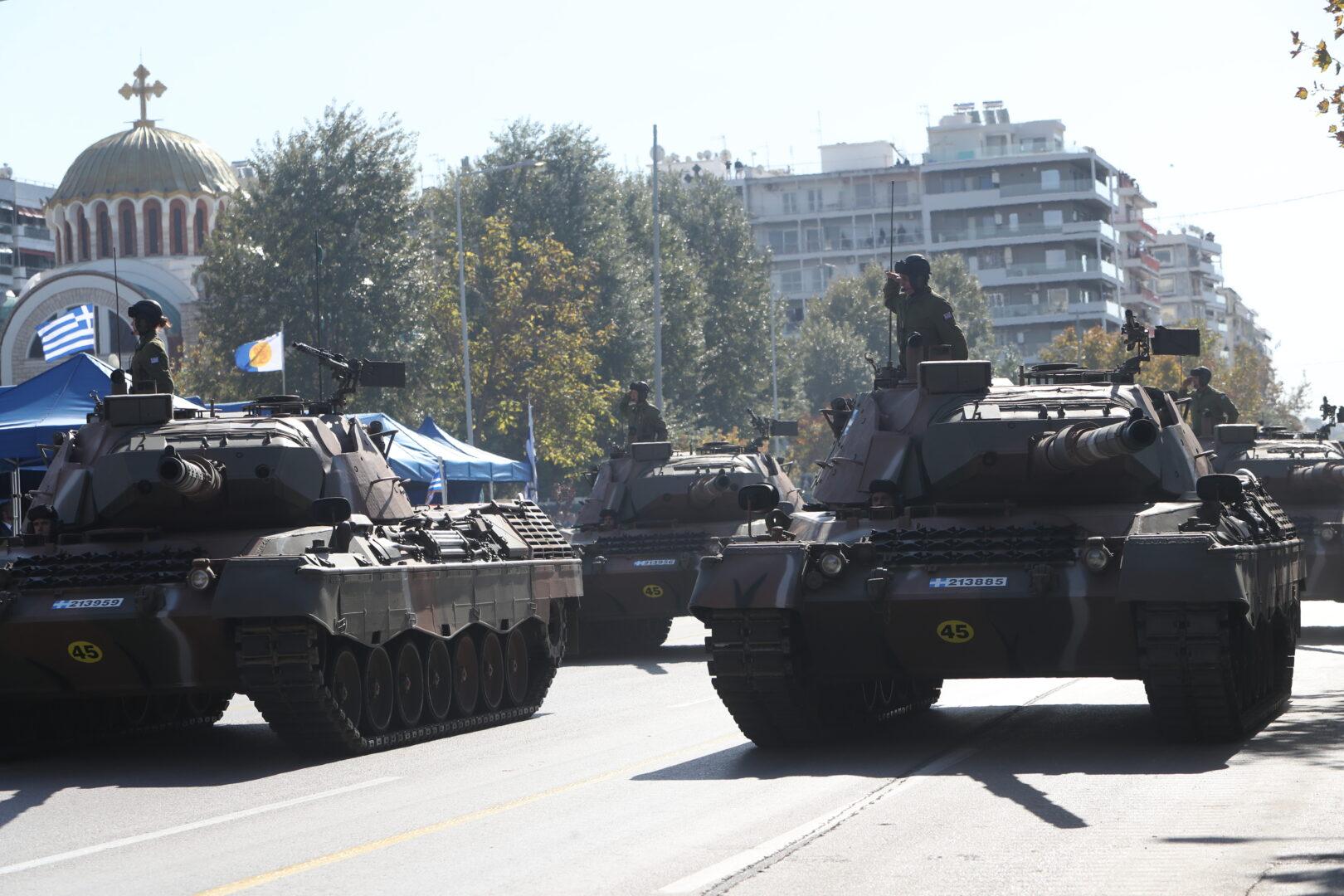 Σε επίπεδο αρμάτων μάχης οι θεατές είχαν τη δυνατότητα να δουν άρματα Leopard του Στρατού Ξηράς εξοπλισμένα με ειδικά «κλουβιά» που τα προστατεύουν απέναντι σε ενδεχόμενα χτυπήματα στον πύργο του άρματος.