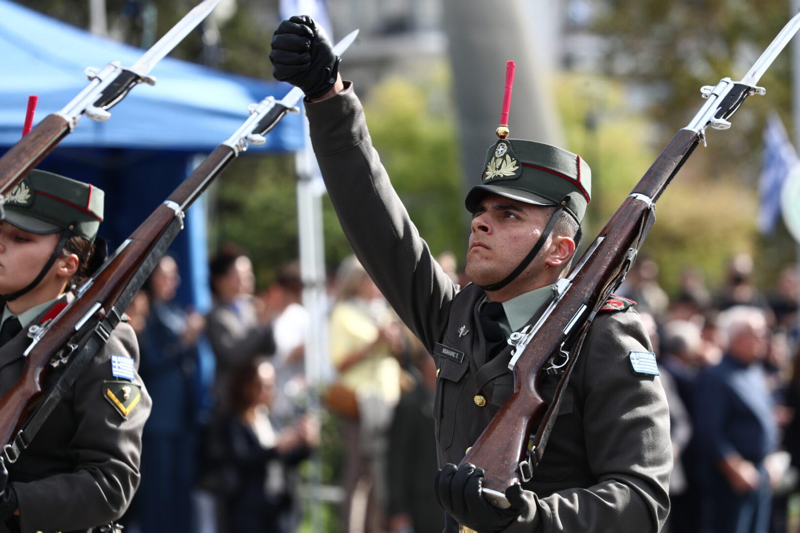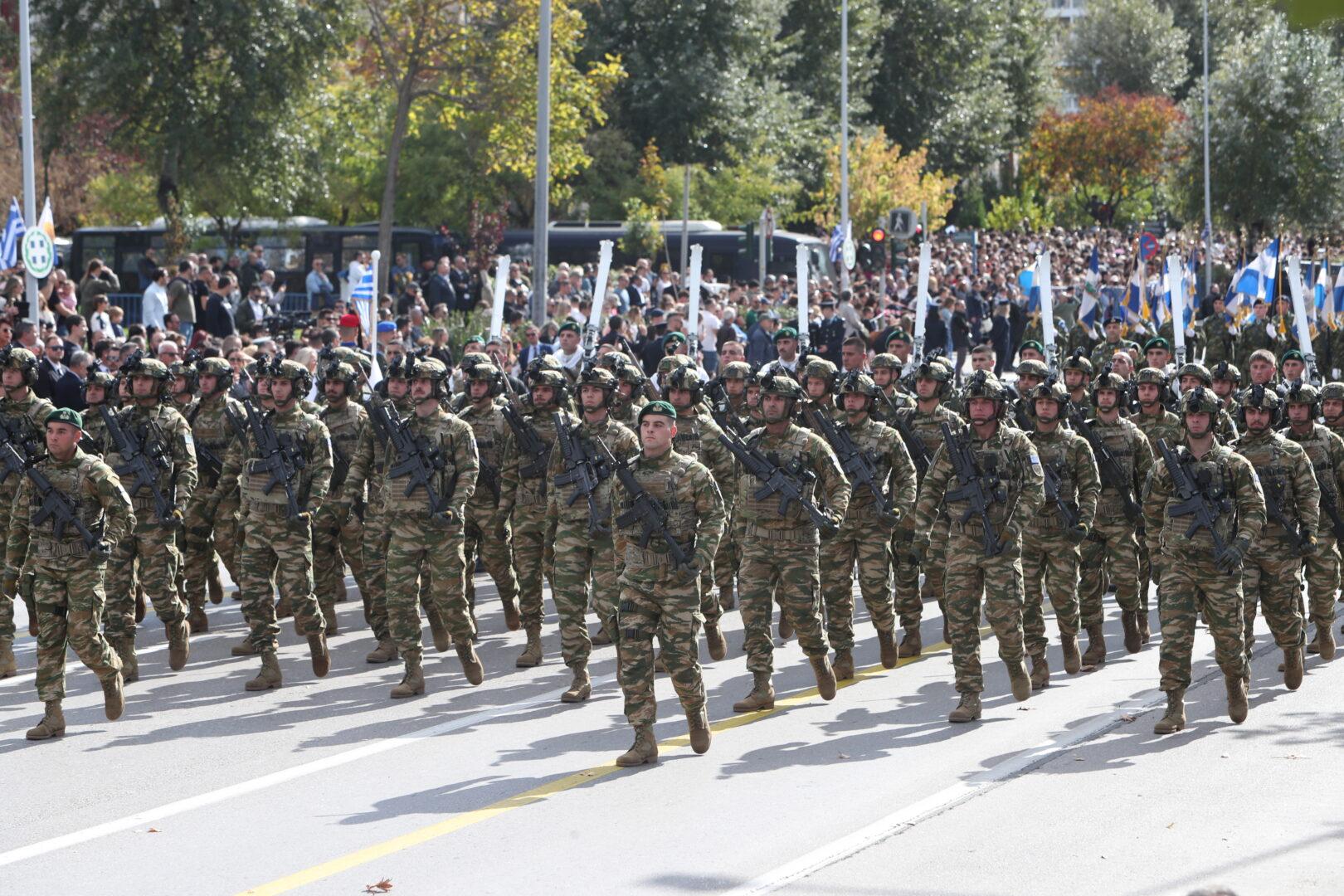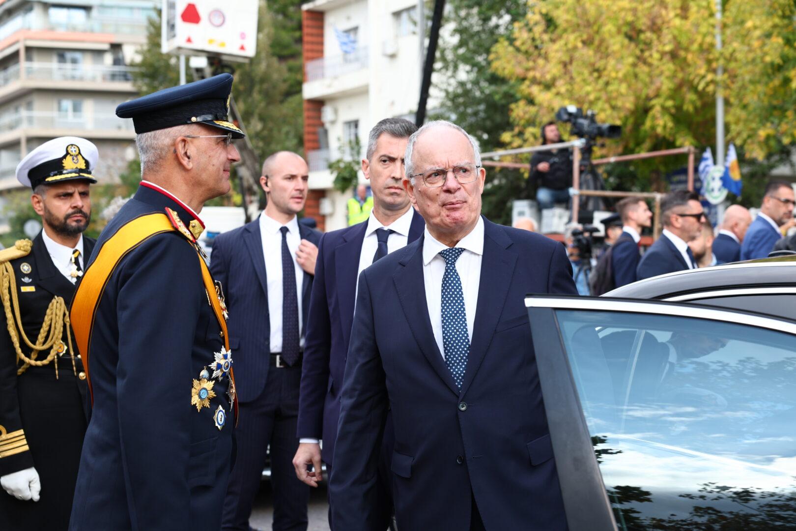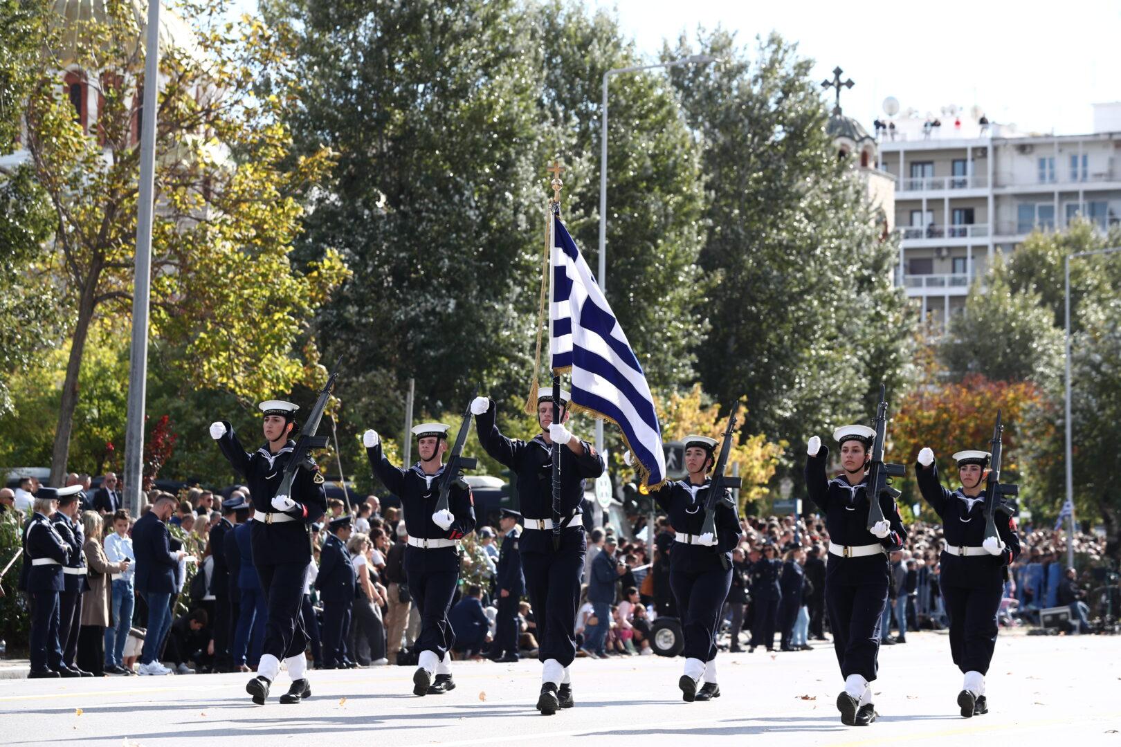 Παρουσία του Προέδρου της Δημοκρατίας, Κωνσταντίνου Τασούλα, του πρωθυπουργού Κυριάκου Μητσοτάκη, των υπουργών Άμυνας Ελλάδας και Κύπρου, Νίκου Δένδια και Βασίλη Πάλμα, των προέδρων του ΠΑΣΟΚ και του ΣΥΡΙΖΑ, εκπροσώπων κομμάτων, βουλευτών, του δημάρχου Θεσσαλονίκης και της ηγεσίας των Ενόπλων Δυνάμεων, πραγματοποιείται η φετινή στρατιωτική παρέλαση στη Θεσσαλονίκη.