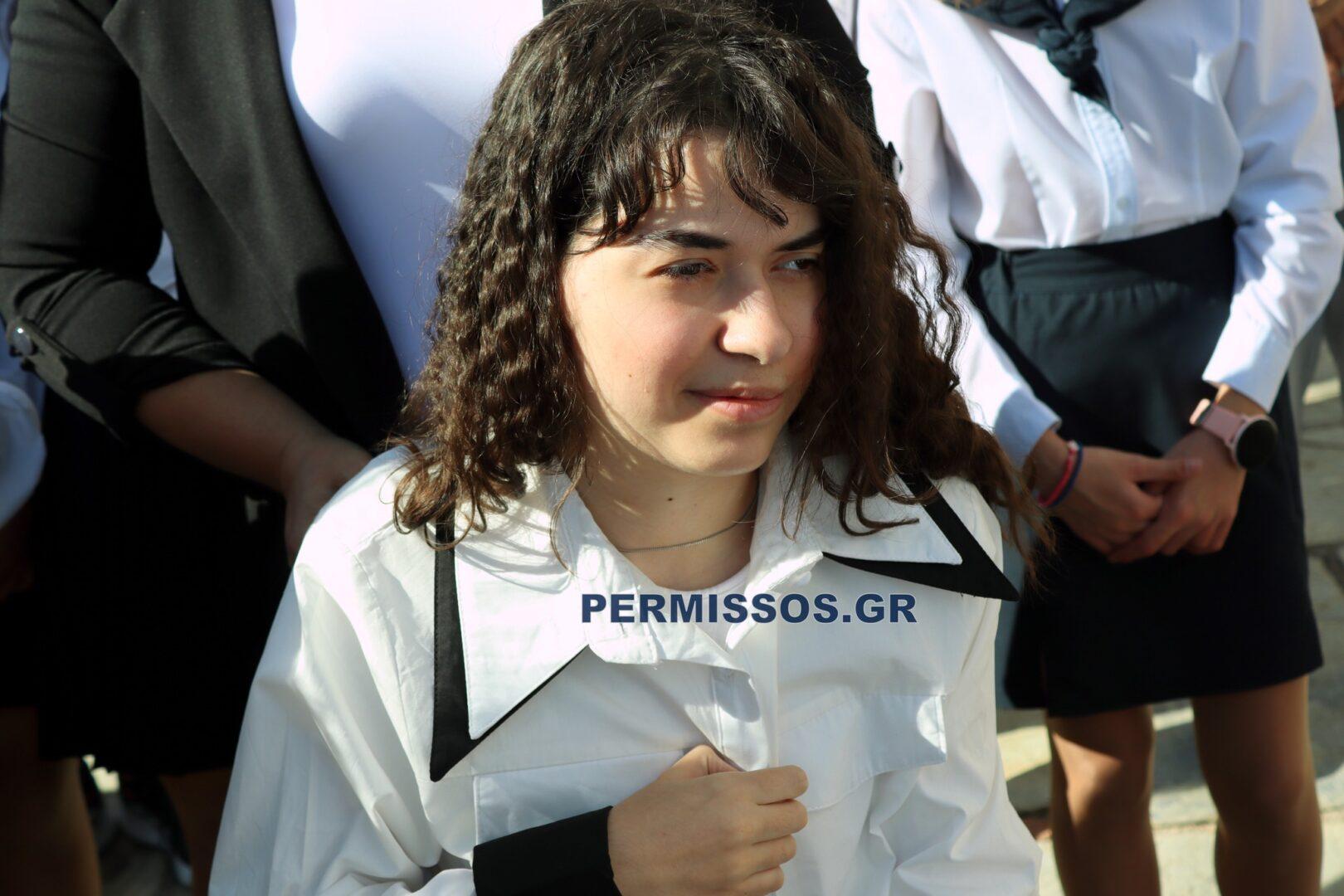 Στις φωτογραφίες που δημοσιεύει το permissos.gr, η μικρή Αλεξία- η οποία φοιτά στην πρώτη Γυμνασίου- , κρατά τη σημαία και με υπερηφάνεια κάνει παρέλαση σε κεντρικό δρόμο της γενέτειράς της.