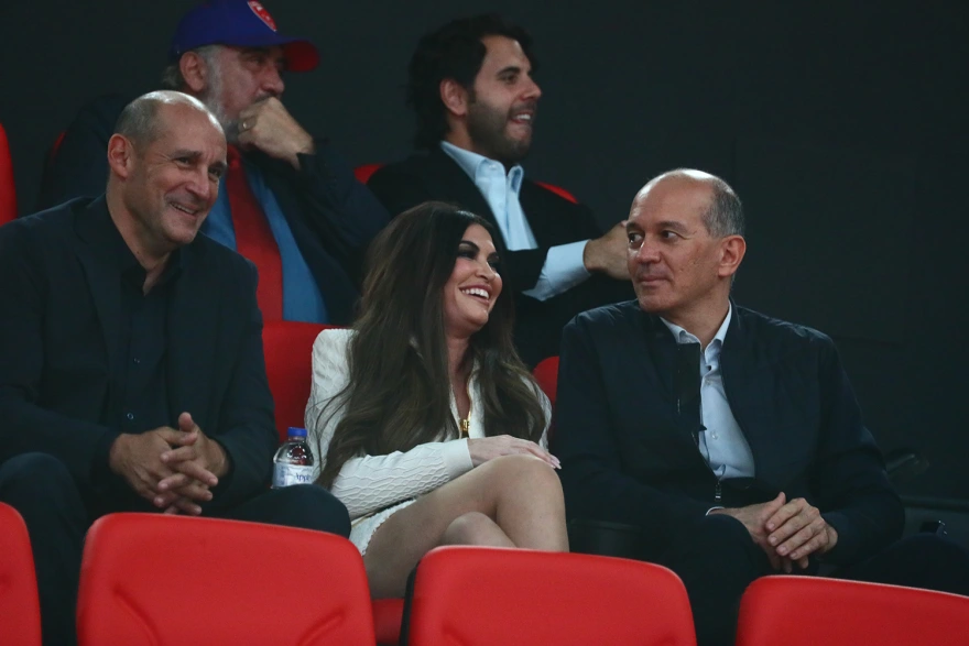 Χαμογελαστή και ευδιάθετη, η Αμερικανίδα πρέσβης χαιρέτισε τον κόσμο και φωτογραφήθηκε στις εξέδρες των επισήμων, ανάμεσα στους ιδιοκτήτες της ΚΑΕ Ολυμπιακός, Παναγιώτη και Γιώργο Αγγελόπουλο.
