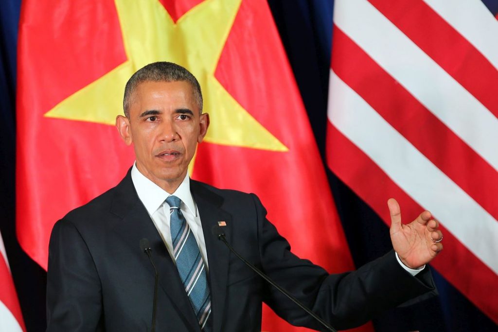 epa05324553 US President Barack Obama delivers a speech during a press conference at the International Convention Center in Hanoi, Vietnam, 23 May 2016. US President Barack Obama visits Vietnam for the first time from 23 to 25 May 2016, making him the third US President to visit the South East Asian country since the end of the Vietnam War in 1975. During the first day of his visit Obama announced that the US will lift its arms embargo on weapon sales to Vietnam. EPA/LUONG THAI LINH / POOL