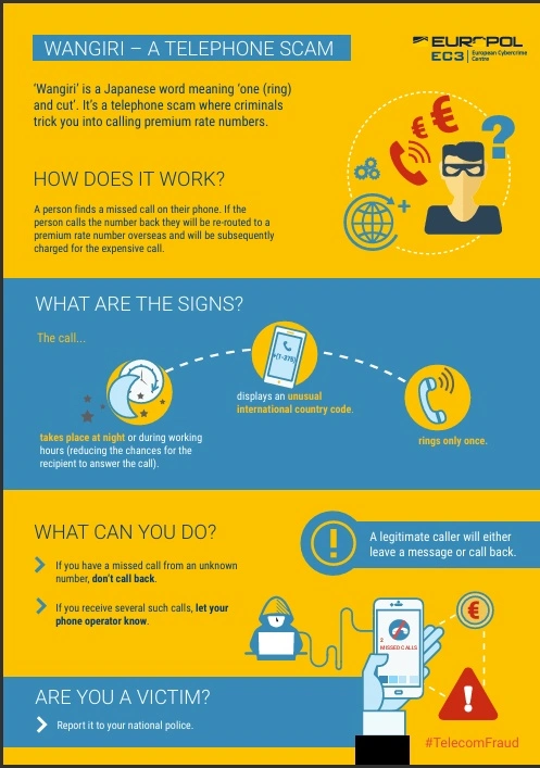Το “wangiri” είναι ένα είδος τηλεφωνικής απάτης από την Ιαπωνία, όπου οι απατεώνες κάνουν σύντομες κλήσεις (one ring scam ή απάτη ενός κουδουνίσματος) σε έναν αριθμό, ελπίζοντας ότι ο παραλήπτης θα καλέσει πίσω. Αυτό συνεπάγεται ένα τεράστιο κόστος για το ανυποψίαστο και ένα επίσης τεράστιο κέρδος για τους απατεώνες.