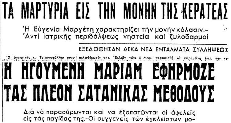 Αυτές είναι μόνο τρεις από τις ιστορίες που ήρθαν στο φως με τη σύλληψη της ηγουμένης του μοναστηριού στην Κερατέα. Μια γυναίκα ισχυρίστηκε ότι την άφησαν νηστική για σχεδόν έξι μήνες, δίνοντάς της να τρώει τα κουκούτσια από ελιές και φλούδες κρεμμυδιών. Και σαν να μην έφταναν όλα αυτά, την ανάγκαζαν να πίνει και τα ούρα της.