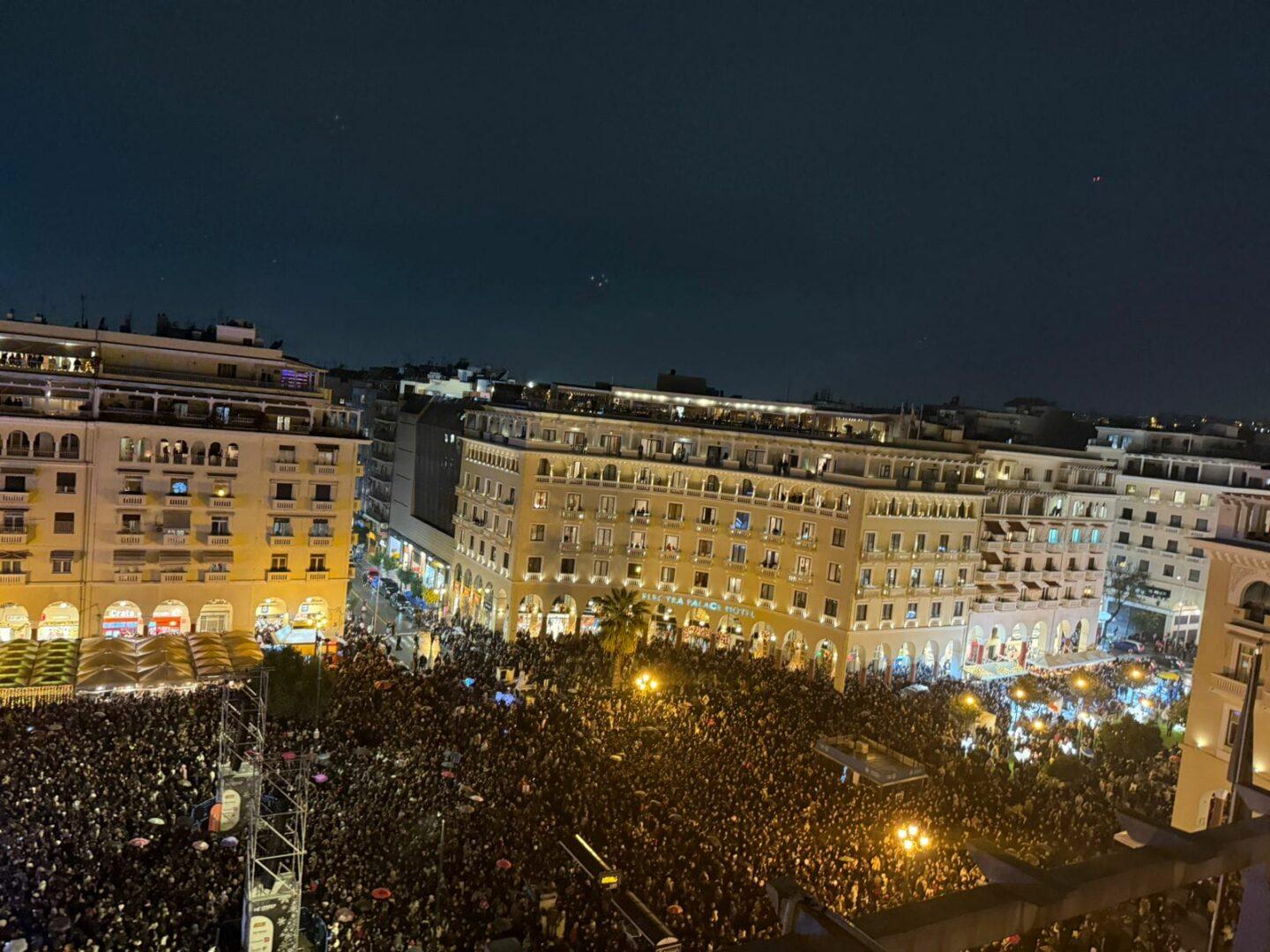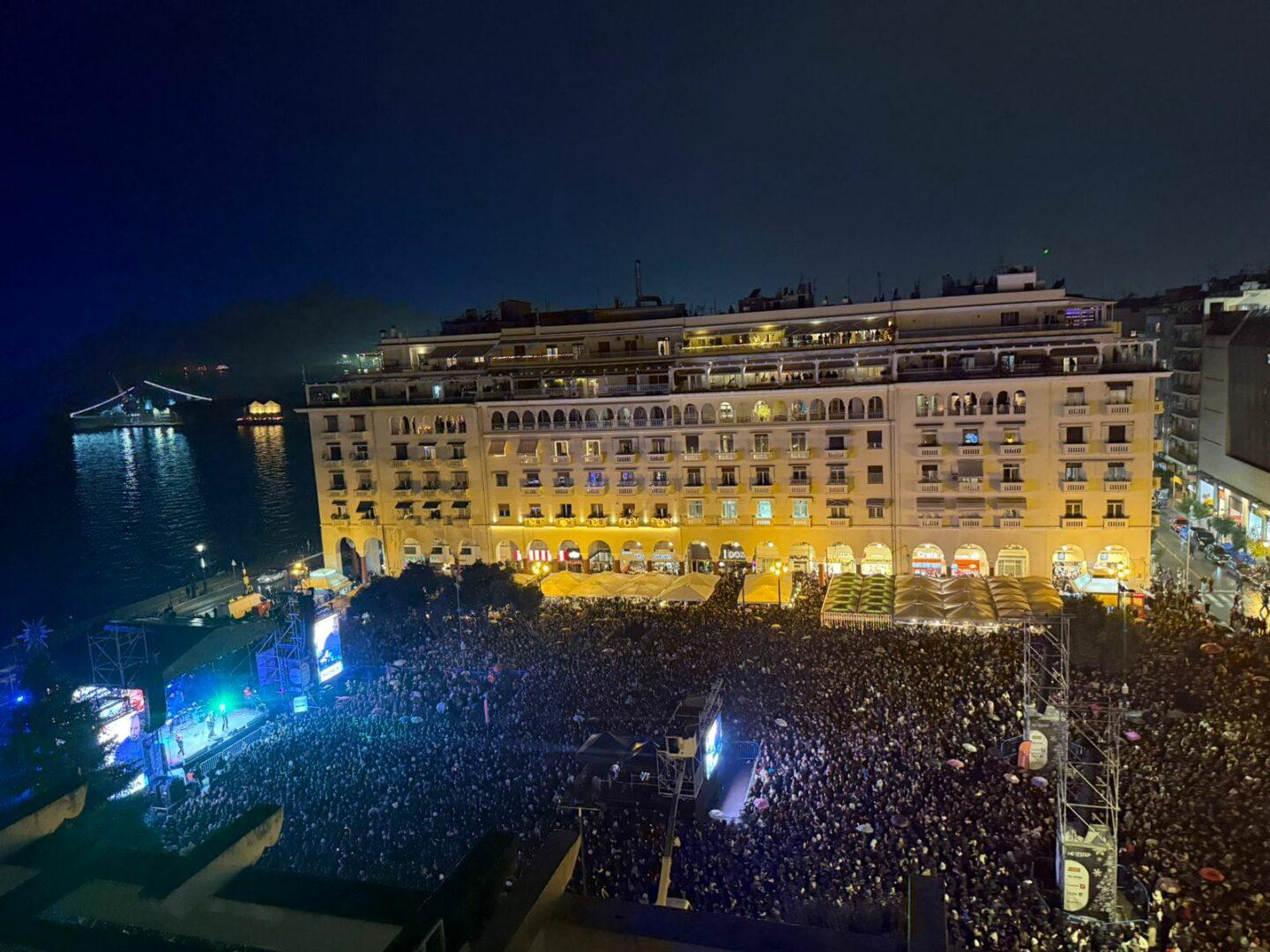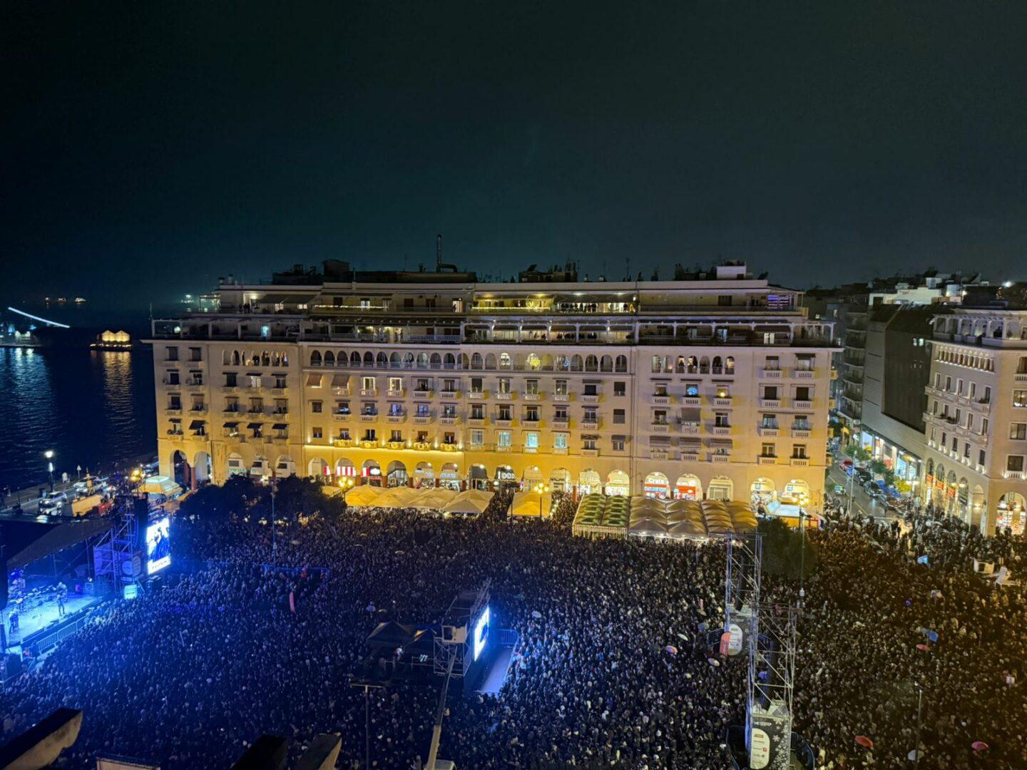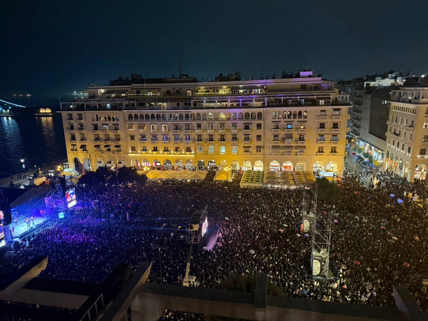 Την εκδήλωση παρουσίασε με ζωντάνια και κομψότητα η Μαρία Μπεκατώρου, ενώ χιλιάδες πολίτες πλημμύρισαν την πλατεία για να ζήσουν το «σήμα» της έναρξης της εορταστικής περιόδου. Ο Αντώνης Ρέμος ανέλαβε να μετατρέψει τη νύχτα σε μουσικό ταξίδι, ξεκινώντας από τα πρώτα του βήματα στη Θεσσαλονίκη και φτάνοντας μέχρι τις πιο πρόσφατες επιτυχίες του. Η σκηνή γέμισε με αγαπημένα τραγούδια και έντονα συναισθήματα, δημιουργώντας μια μοναδική εμπειρία για όλους τους παρευρισκόμενους.