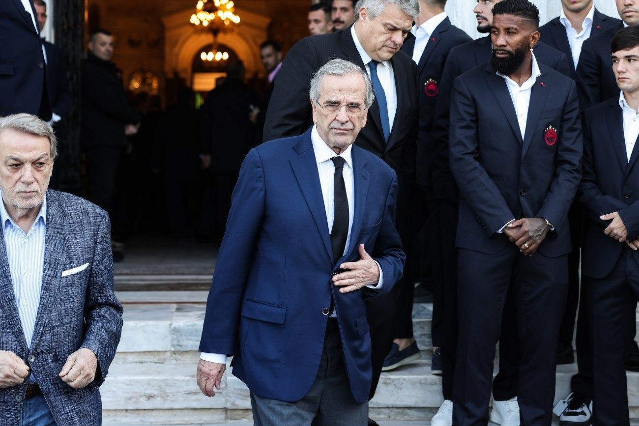 Την εξόδιο ακολουθία τέλεσε ο Μητροπολίτης Πειραιώς κ.κ. Σεραφείμ, ενώ στον ναό βρέθηκαν και εκπρόσωποι θεσμικών και κοινωνικών φορέων. Ανάμεσά τους ο πρώην πρέσβης των Ηνωμένων Πολιτειών στην Ελλάδα Τζορτζ Τσούνης, ο πρύτανης του ΕΚΠΑ Γεράσιμος Σιάσος, ο πρόεδρος του ΕΒΕΑ Γιάννης Μπρατάκος, ο πρόεδρος της Ελληνικής Ολυμπιακής Επιτροπής Ισίδωρος Κούβελος και ο πρόεδρος της ΕΠΟ Μάκης Γκαγκάτσης.