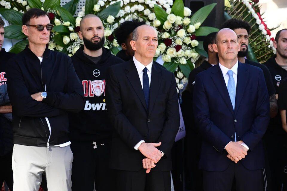 Αντίστοιχα δυναμική ήταν και η παρουσία της ΚΑΕ Ολυμπιακός. Οι διοικητικοί ηγέτες, Παναγιώτης και Γιώργος Αγγελόπουλος, ο προπονητής Γιώργος Μπαρτζώκας και οι παίκτες της ομάδας μπάσκετ άφησαν λουλούδια στο μνημείο, εκεί όπου ο χρόνος σταμάτησε για πάντα το 1981.