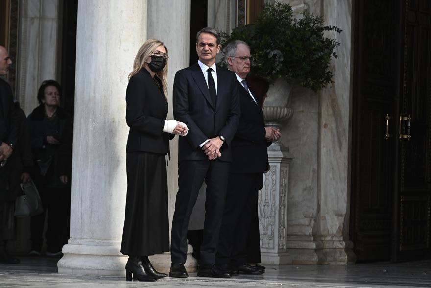 Το «παρών» στην εξόδιο ακολουθία έδωσαν κορυφαίοι πολιτειακοί και πολιτικοί παράγοντες. Ανάμεσά τους, ο Πρόεδρος της Δημοκρατίας Κωνσταντίνος Τασούλας, ο πρωθυπουργός Κυριάκος Μητσοτάκης συνοδευόμενος από τη σύζυγό του Μαρέβα, καθώς και ο αντιπρόεδρος της κυβέρνησης Κωστής Χατζηδάκης. Παρόντες ήταν επίσης υπουργοί, βουλευτές, εκπρόσωποι κομμάτων, αλλά και πλήθος προσωπικοτήτων από τον χώρο των γραμμάτων, των τεχνών και της κοινωνικής ζωής.
