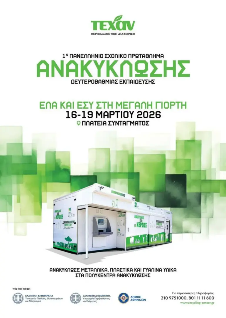 Για αυτό τον λόγο διοργανώνεται από τις 16 έως τις 19 Μαρτίου 2026 στην καρδιά της Αθήνας, την Πλατεία Συντάγματος, ένα τετραήμερο γεμάτο δράση, ανακύκλωση και μουσική! Μαθητές και πολίτες ανακυκλώνουν στα υπερσύγχρονα Πολυκέντρα Ανακύκλωσης που θα βρίσκονται στην πλατεία.
