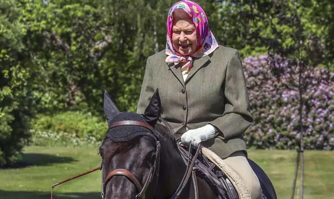 Η φωτογραφία τραβήχτηκε στο Κάστρο του Windsor τον περασμένο μήνα και δεξιά και αριστερά της Βασίλισσας βρίσκονται τα δυο αγαπημένα της άλογα, η Bybeck Nightingale και η Bybeck Katie. Στο φόντο είναι μια τεράστια ανθισμένη μανόλια.