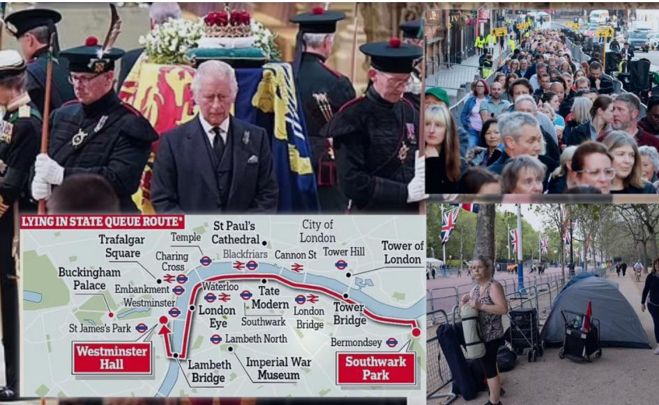 Kόσμος έχει ήδη κατασκηνώσει στην πρωτεύουσα για την κηδεία της βασίλισσας Ελισάβετ από τη Δευτέρα, και το κοινό εκτιμάται ότι μπορεί να περιμένει έως και 35 ώρες για να δει από κοντά τη σορό της Αυτής Μεγαλειότητας, εν μέσω προειδοποιήσεων ότι τα ξενοδοχεία, οι υπηρεσίες μεταφορών και ασφάλειας θα φτάσουν στα επιχειρησιακά όριά τους.