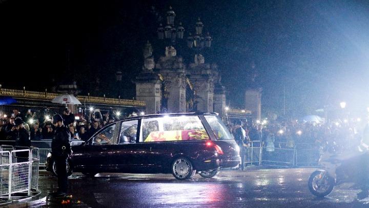 Υπό τις επευφημίες και τα χειροκροτήματα των πιστών υπηκόων της, η σορός της βασίλισσας Ελισάβετ πέρασε χθες το βράδυ τις πύλες των Ανακτόρων του Μπάκιγχαμ για μια τελευταία νύχτα στην επίσημη κατοικία της στο Λονδίνο, προτού τεθεί σε λαϊκό προσκύνημα για πέντε ημέρες στο Ουέστμινστερ.