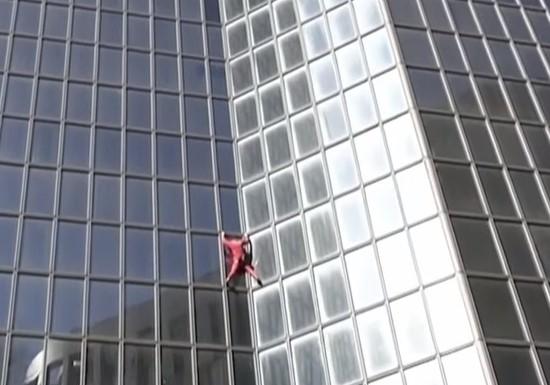Ένας αναρριχητής γνωστός ως «Spider Man» της Γαλλίας γιόρτασε τα 60ά του γενέθλια σκαρφαλώνοντας έναν ουρανοξύστη 48 ορόφων χωρίς εξοπλισμό ασφαλείας.