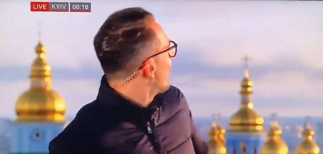 Τη στιγμή της επίθεσης ο ανταποκριτής του BBC μετέφερε την κατάσταση που επικρατεί στο ουκρανικό μέτωπο, όταν ξαφνικά ακούγεται ο ήχος της βόμβας που έπεφτε σε περιοχή του Κιέβου.