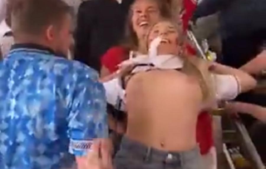 Όμως όλα τα σχέδια πήγαν στον… κουβά, καθώς μια νεαρή φίλαθλος από τη Βρετανία αποφάσισε να προχωρήσει σε μια άκρως τολμηρή -αν σκεφτεί κανείς τους νόμους που ισχύουν στο Εμιράτο- κίνηση: να αποκαλύψει το στήθος της σε δημόσια θέα.