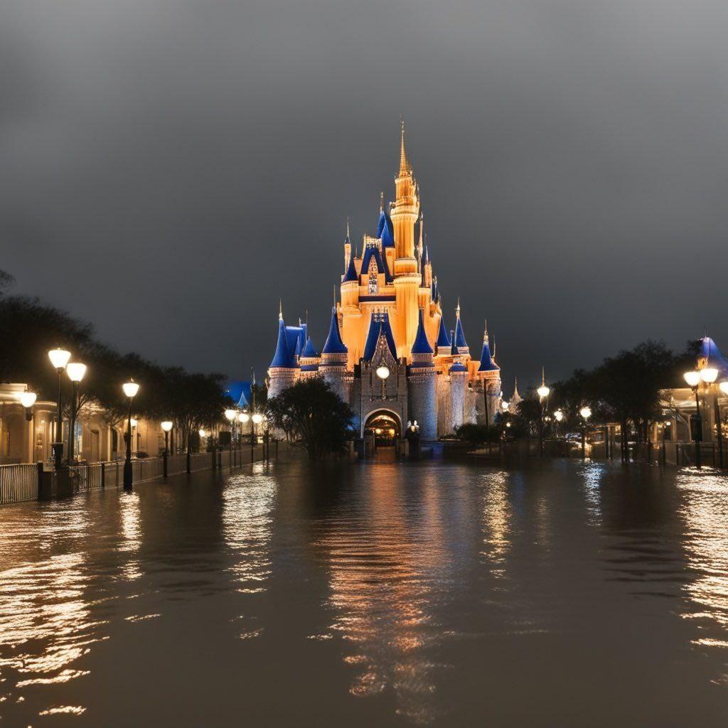 Τρομακτικές είναι και οι φωτογραφίες από το παραμυθένιο θεματικό πάρκο, με τους διαδρόμους και τις εισόδους των κτιρίων και των κάστρων να έχουν πλημμυρίσει.