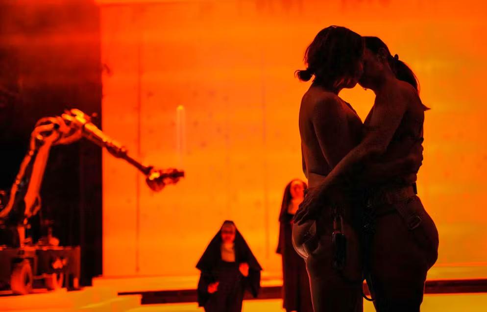 Η παράσταση είναι αυστηρά άνω των 18 ετών λόγω των σκηνών που περιλαμβάνει. «Ο Μπαχ συναντά το μέταλ, οι Weather Girls τον Ραχμάνινοφ – και οι γυμνές καλόγριες τα πατίνια», συνοψίζει την παράσταση η ιστοσελίδα της Κρατικής Όπερας της Στουτγάρδης.