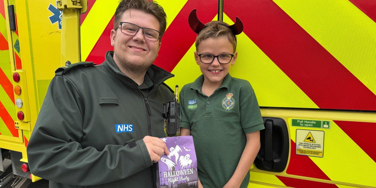 Finley-Jay handed out goody bags to ambulance crews at Royal Shrewsbury Hospital. Trust CEO Jo Williams surprised him with a special goody bag which he loved!@officialwmas Technician Lewis Price was lucky to receive a goody bag from Finley.